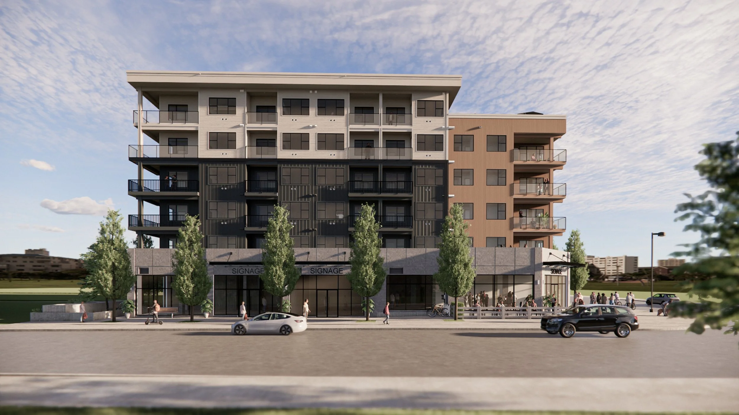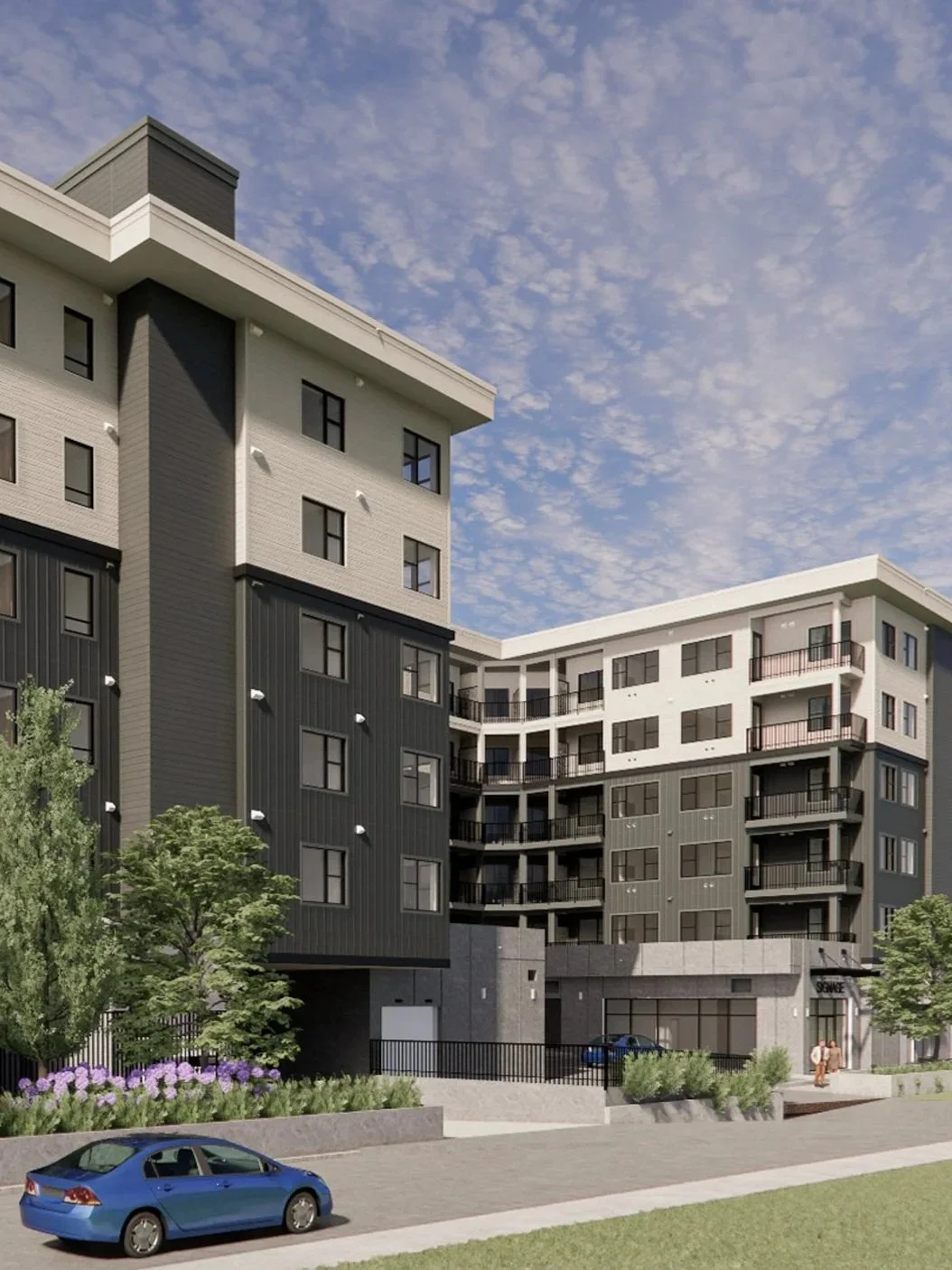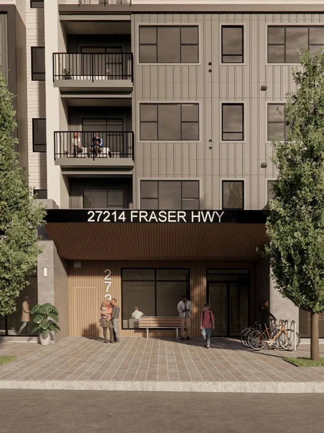 Aldergrove Apartments introduces a vibrant rental community to the heart of downtown Aldergrove, BC. The building’s design balances functional modern living with a sense of connection to the neighbourhood. With 128 thoughtfully planned homes, full-size kitchens, and a variety of amenity spaces—including a library, café, brewery, and shops at street level—the project fosters interaction and accessibility for residents and visitors alike.