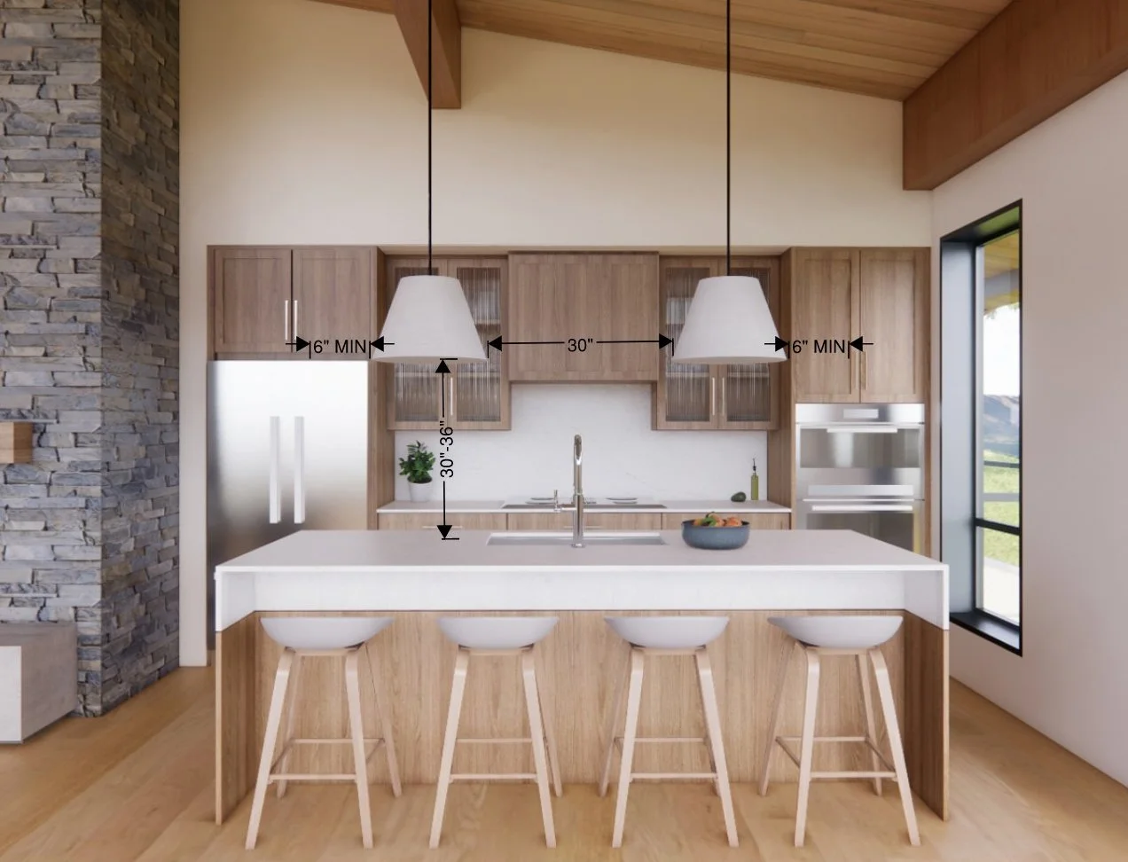 Always consider how the fixtures sit within your sight lines. If you or your family members are taller, or if your kitchen has an open layout, adjust the pendant height to maintain clear views across the island and into adjoining spaces.